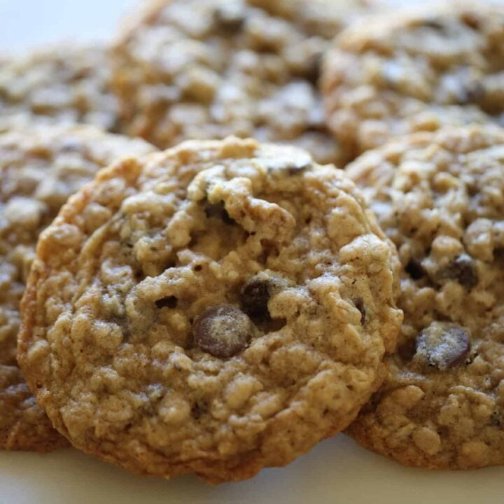 Have you ever made my chewy chocolate chip cookies recipe? One popular variation is oatmeal chocolate chip cookies. These chocolate chip oatmeal cookies are reminiscent of the old favorite oatmeal chocolate cookie recipes you may have grown up with. I've called these chocolate chip oatmeal cookie pancakes for a very plain reason:
